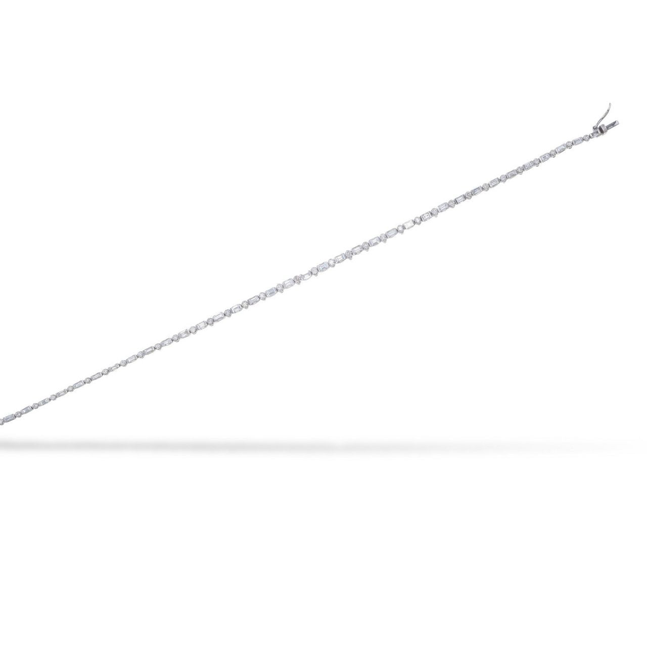 Round & Baguette Diamond Tennis Bracelet 1.5 ct – 18K White Gold