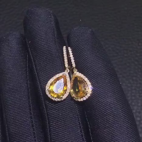 Náušnice s citríny 8,15 ct a diamanty z 14karátového zlata
