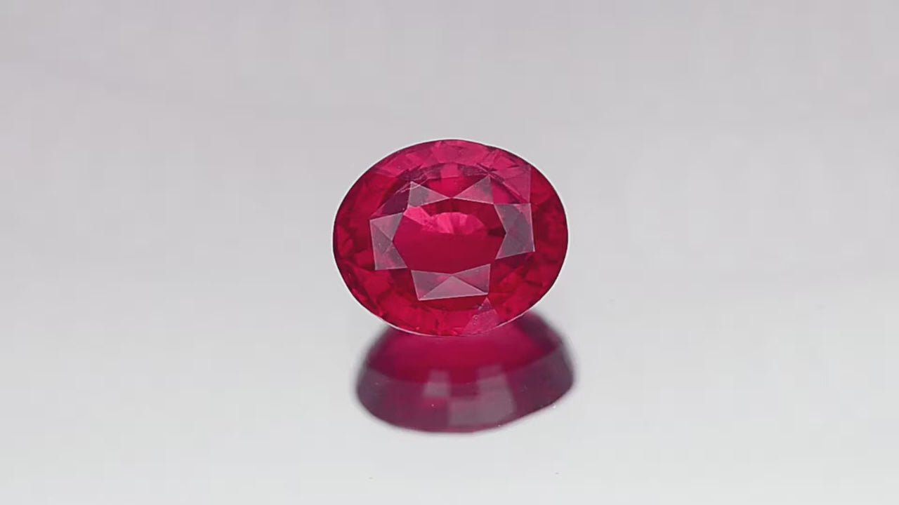 This 4.09 carat natural pinkish-red ruby represents a rare intersection of size, integrity, and documented origin. Fashioned in an oval shape with a modified brilliant/step cut (9.61 × 8.13 × 5.70 mm), the stone displays strong internal life and saturation while preserving excellent structural balance.