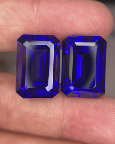 Natural Deep Blue Tanzanite Matching Pair from Tanzania weighing 66.86 carats / top cut and quality
