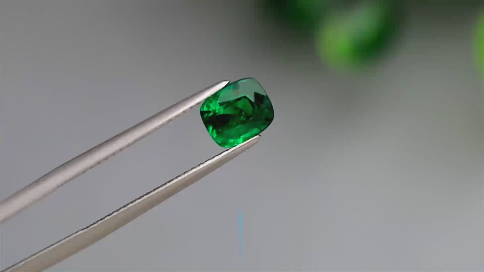 Natural Minor Oil Vivid Green Emerald from Zambia weighing 1.20 carats.